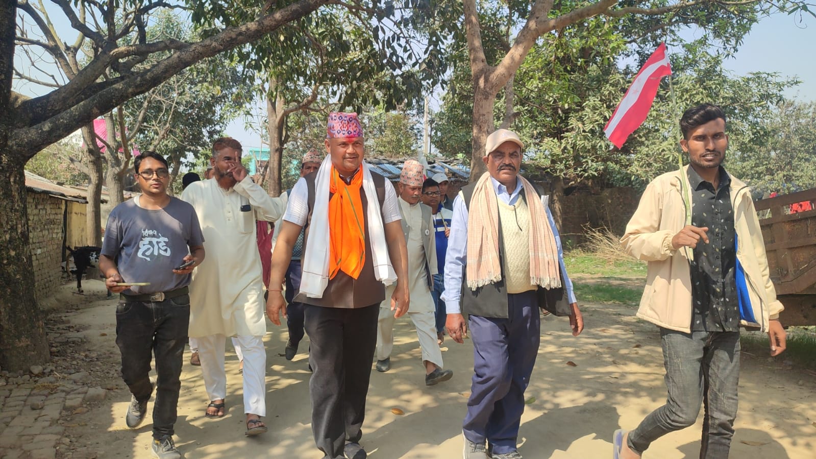 नेपालगन्ज, फागुन ११ : बाँके, प्रतिनिधि सभा क्षेत्र नम्बर २ का उम्मेदवार शुधान्सु कोइराला सोमबार मनिकापुर पुग्दा स्थानीय नाथे कुर्मी पनि सँग–सँगै घरदैलोमा निस्किए । घरदैलो गर्दै शुधान्सुलाई मतदान गर्न उनले गाउँका मतदाताहरुलाई आग्रह गरे । मतदाताहरुलाई उनले भन्दै थिए, ‘पुर्वप्रधानमन्त्री स्वर्गिय सुशिल कोइरालाको भतिजा हुन् शुधान्सु कोइराला, यिनलाई तपाईहरु आफ्नो मत दिएर जिताउनुस्, यिनी भ्रष्टाचार गर्दैनन्, विकास पनि गर्छन् ।’