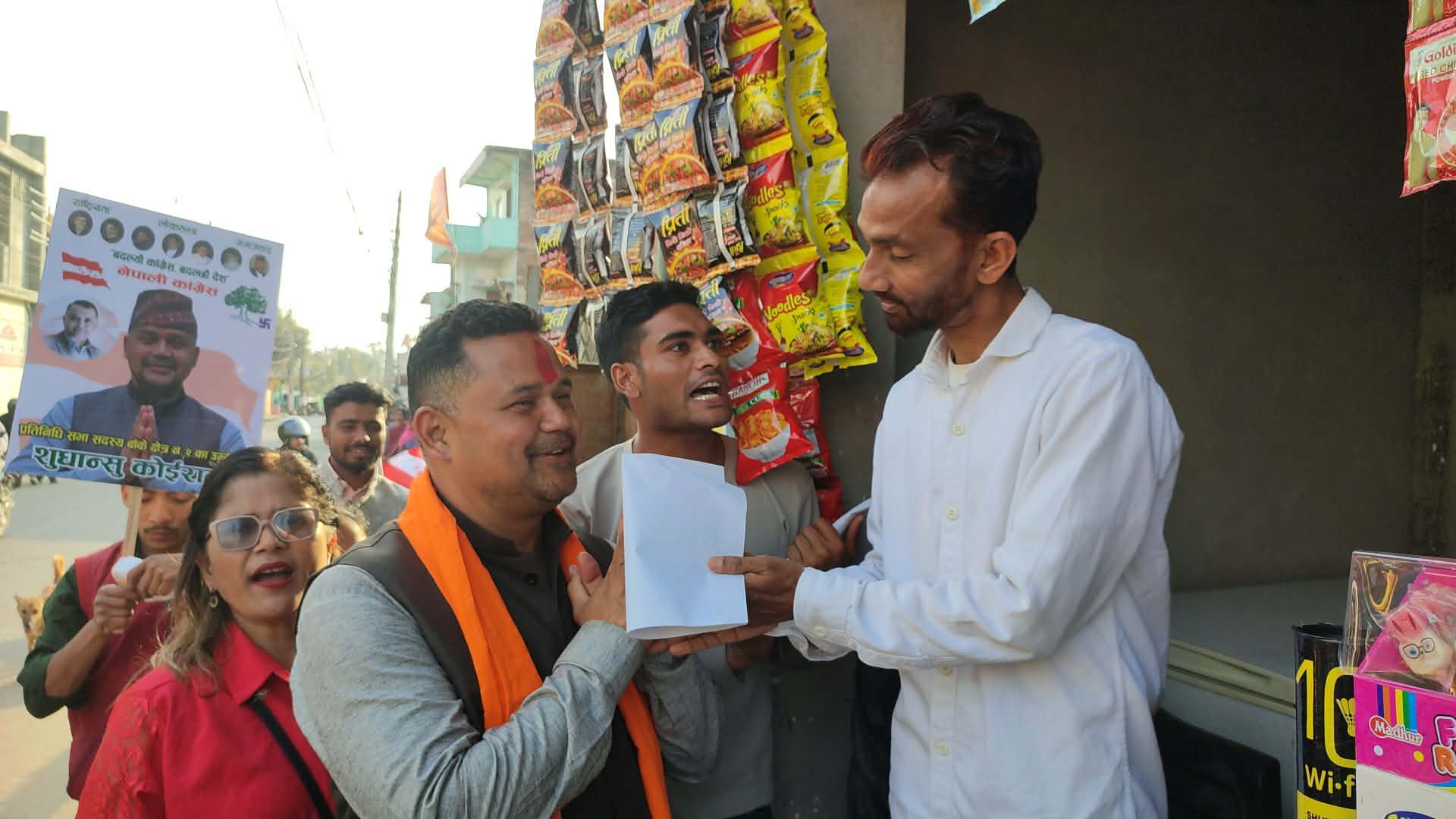 यस्तै नेपालगन्ज उपमहानगरपालिका वडा नम्बर ७ मा भएको घरदैलोका क्रममा वडासभापति नवीन भट्ट, महाधिवेशन प्रतिनिधि कमला भट्ट, नेपाली कांग्रेसका लुम्बिनी प्रदेश कार्यसमिति सदस्य दिक्षा कोइराला, कांग्रेस नेता रमेश नाग, नेताहरु बीरेन्द्र पछाई, सुरेश श्रेष्ठ, मेराज अहमद, नेपाल साँस्कृतिक संघका केन्द्रिय सदस्य जिनु हक, मुस्लिम संघ बाँकेका जिल्ला सह-सचिव रबिसा शर्मा हल्वाई, संघका उपमहानगर अध्यक्ष फरिदुल हक, अरुण बिक्रम शाह, विजय नाग, सिता पछाई, राधा खड्का, पुष्पा पन्त, इन्द्रा पछाई, उत्तम मानन्धर, शेकानमान पति, गिता गौतम लगायतको उपस्थिती रहेको थियो ।
